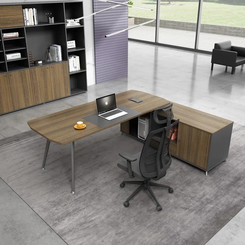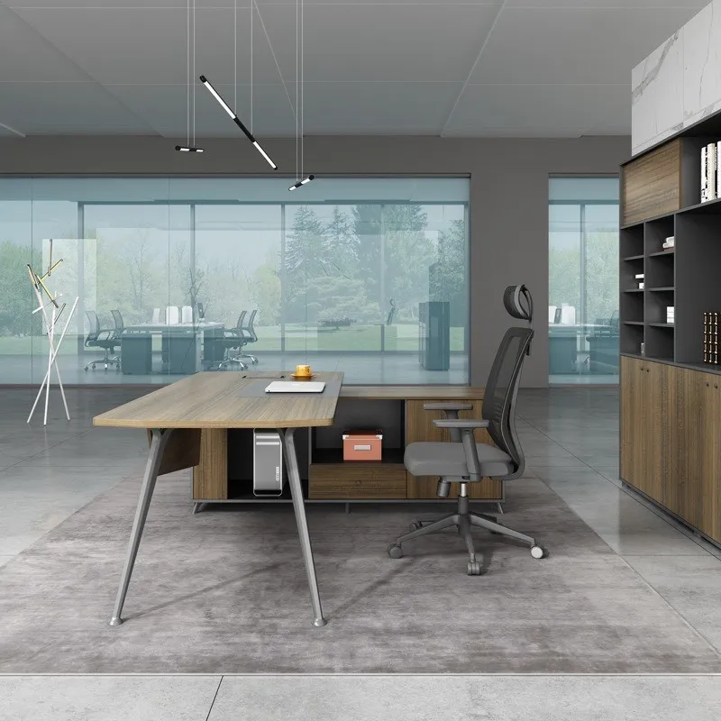 Sản phẩm này là lựa chọn lý tưởng cho phòng lãnh đạo, giám đốc nhờ thiết kế thể hiện rõ nét uy quyền và sự chuyên nghiệp. Màu nâu gỗ sang trọng kết hợp cùng các chi tiết kim loại hiện đại giúp bàn dễ dàng hòa hợp với nhiều phong cách nội thất khác nhau.