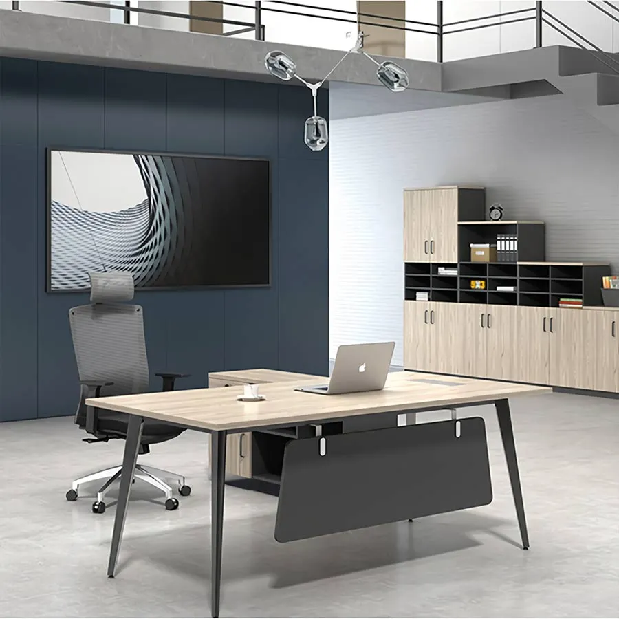 Bàn được trang bị thêm phần yếm ở mặt trước, vừa giúp tạo sự riêng tư, vừa giúp giảm bớt cảm giác trống trải cho khu vực làm việc. Điều này đặc biệt hữu ích trong môi trường văn phòng mở, nơi nhân viên và lãnh đạo cần có không gian cá nhân riêng để tập trung xử lý công việc.