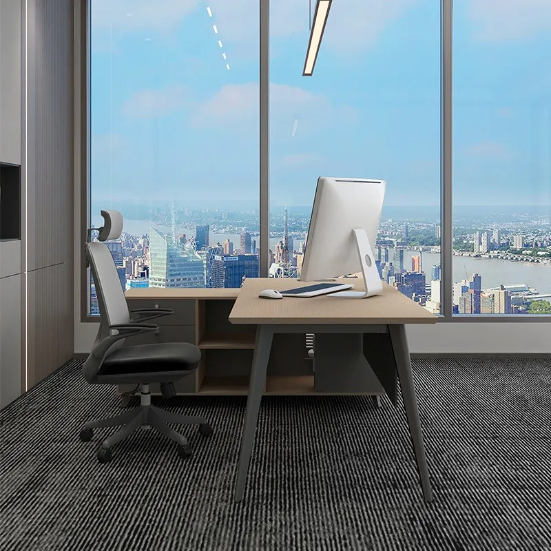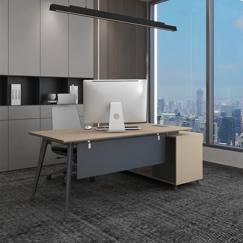 Điểm đặc biệt của mẫu bàn này là hệ thống tủ phụ đi kèm, được thiết kế sát bên bàn giúp tăng diện tích lưu trữ, đồng thời giữ cho không gian làm việc luôn ngăn nắp. Bàn còn được tích hợp hệ thống lỗ đi dây tiện lợi, giúp việc sắp xếp dây nguồn của máy tính, điện thoại hay các thiết bị điện tử trở nên gọn gàng hơn.