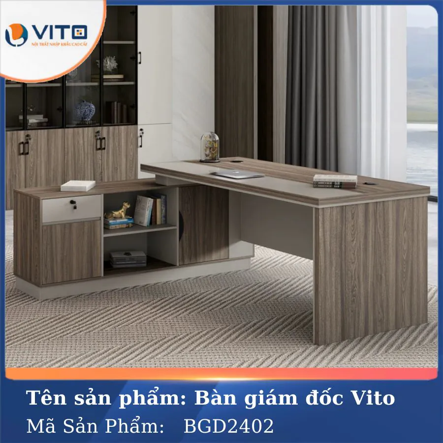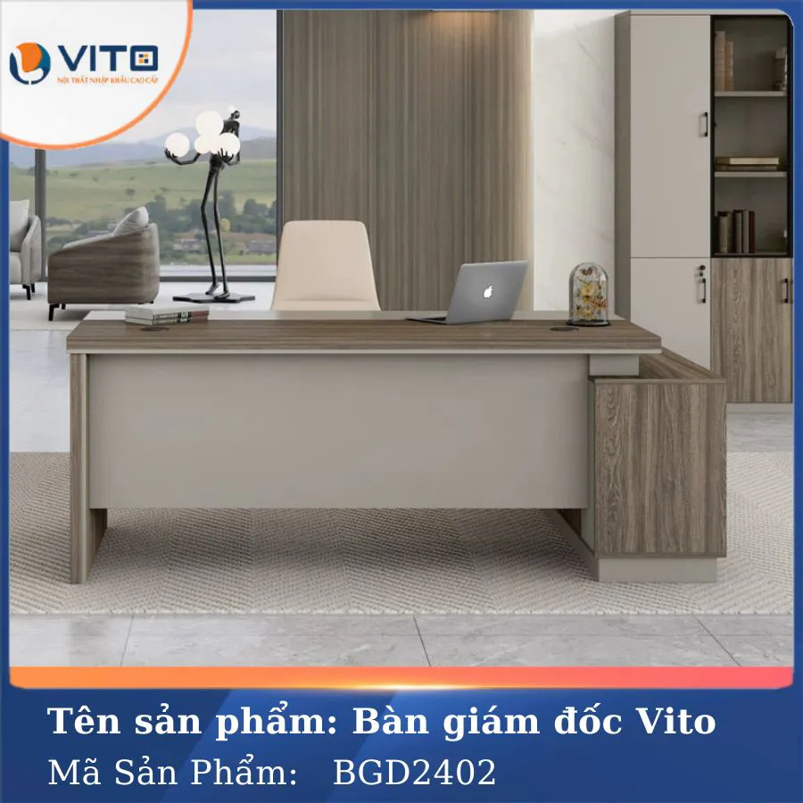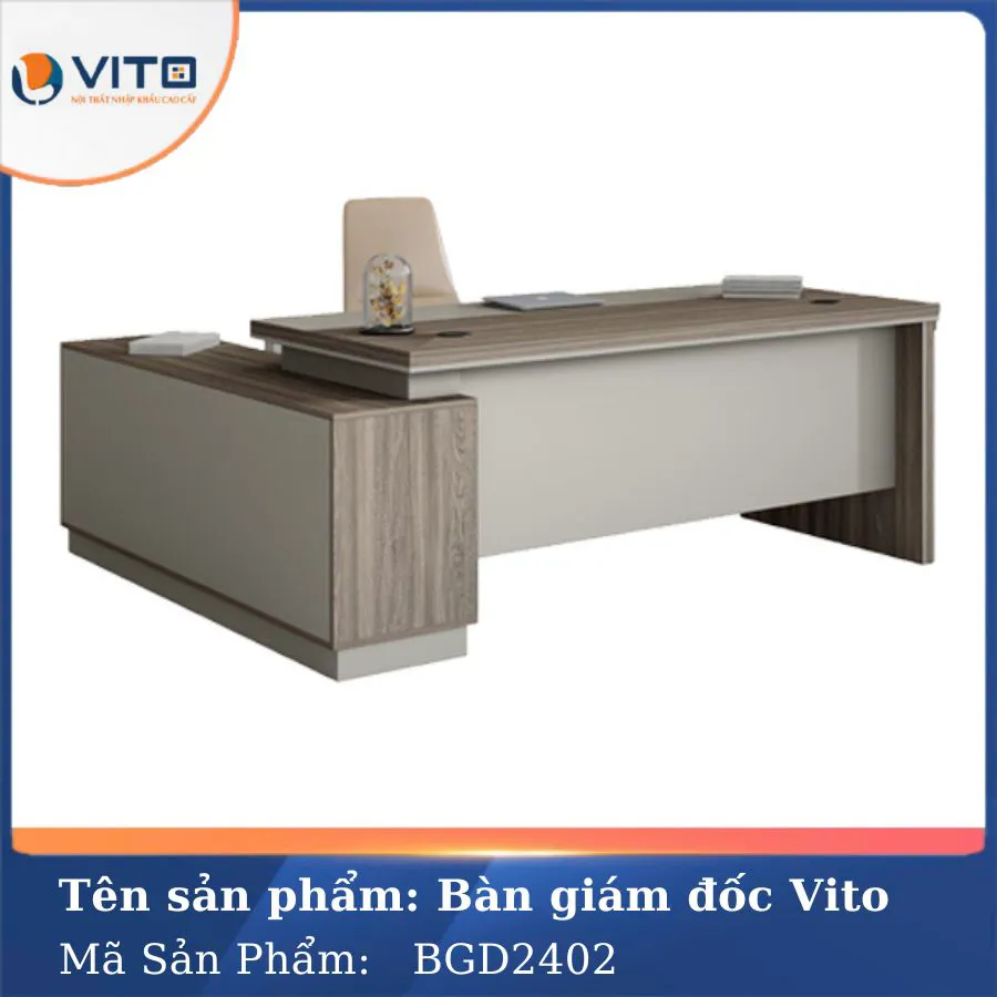 Bàn giám đốc Vito BGD2402 thiết kế mạnh mẽ, khoẻ khoắn, thổi bừng sức sống không gian làm việc, mang năng lượng và truyền cảm hứng cho người lãnh đạo. Cùng tìm hiểu chi tiết hơn về sản phẩm bàn BGD2402 qua bài viết dưới đây cùng Vito!