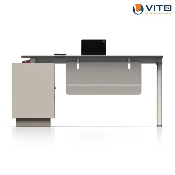 Tủ phụ bên hông bàn được thiết kế với hộc tủ lớn, giúp lưu trữ tài liệu, hồ sơ, đồ dùng cá nhân một cách ngăn nắp và khoa học. Việc kết hợp lưu trữ ngay trong bàn làm việc giúp tiết kiệm không gian và tạo sự thuận tiện tối đa trong quá trình sử dụng. Ngoài ra, phần tủ phụ có thể được thiết kế linh hoạt bên trái hoặc bên phải tùy theo nhu cầu và thói quen của người dùng.