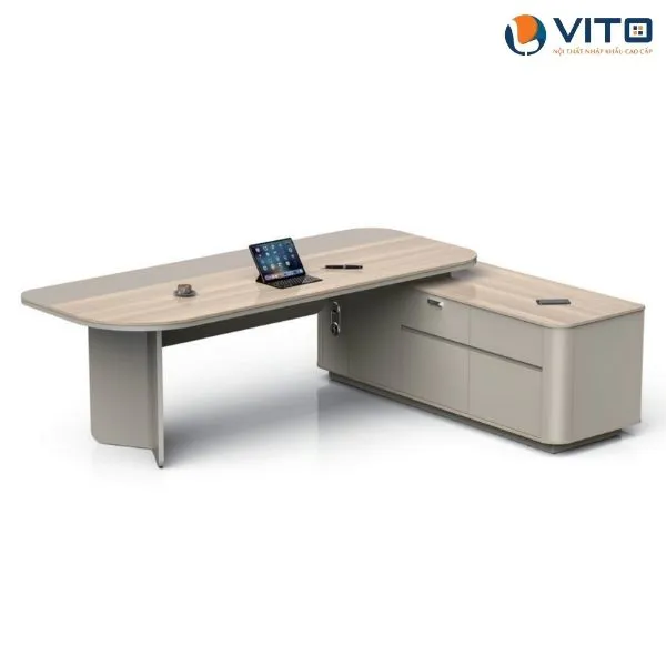 Trong xu hướng nội thất hiện đại, các mẫu bàn giám đốc không chỉ cần đảm bảo yếu tố thẩm mỹ mà còn phải thể hiện được sự quyền uy, chuyên nghiệp và tiện ích trong sử dụng. Mẫu bàn giám đốc Vito BGDV-B0324 chính là minh chứng cho một thiết kế lý tưởng, nơi sự tinh tế trong từng đường nét được hòa quyện hoàn hảo với công năng tối ưu, mang lại trải nghiệm làm việc đẳng cấp cho các nhà lãnh đạo. Hãy cùng Nội thất nhập khẩu Vito khám phá chi tiết về mẫu bàn lãnh đạo chất lượng này ngay nhé!
