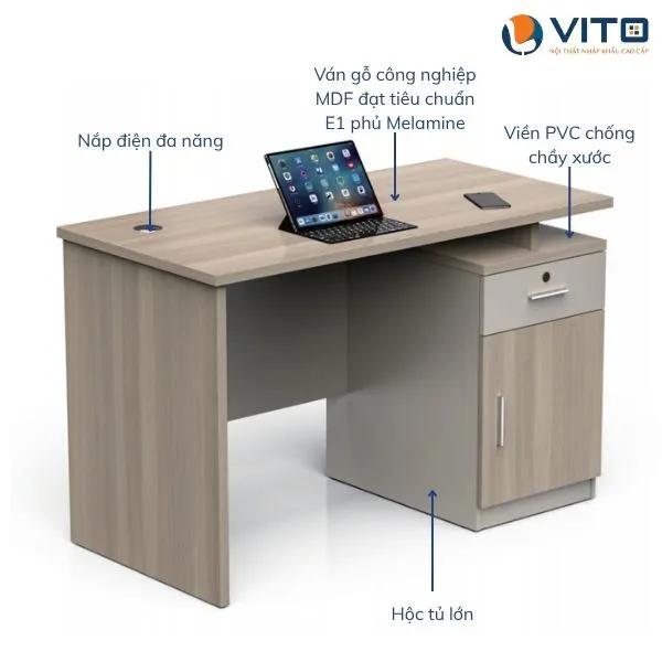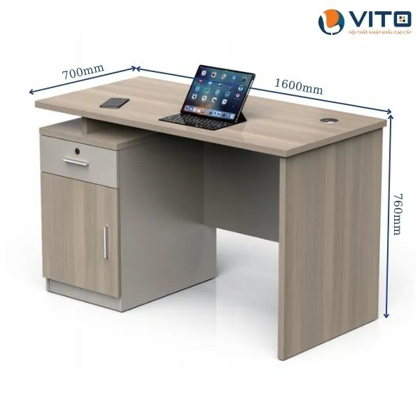 Tủ phụ bên hông bàn được thiết kế với hộc tủ lớn, giúp lưu trữ tài liệu, hồ sơ, đồ dùng cá nhân một cách ngăn nắp và khoa học. Việc kết hợp lưu trữ ngay trong bàn làm việc giúp tiết kiệm không gian và tạo sự thuận tiện tối đa trong quá trình sử dụng. Ngoài ra, phần tủ phụ có thể được thiết kế linh hoạt bên trái hoặc bên phải tùy theo nhu cầu và thói quen của người dùng.