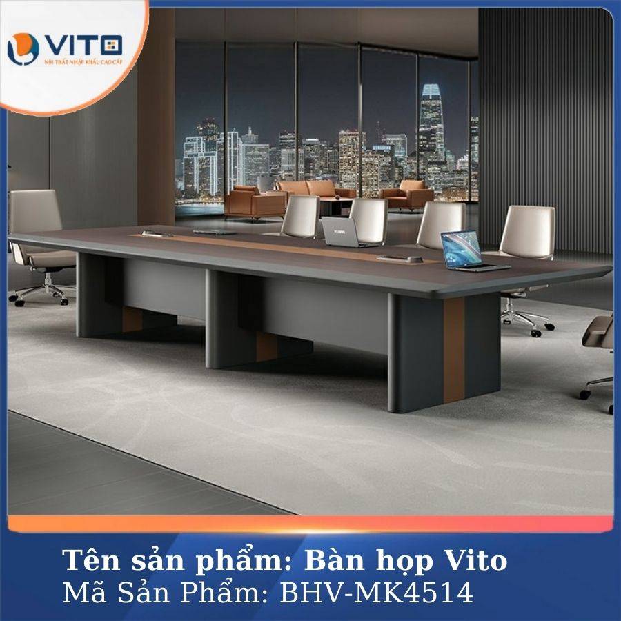 Một không gian phòng họp chuyên nghiệp không thể thiếu một chiếc bàn họp vừa thẩm mỹ vừa tiện ích. Mẫu bàn họp nhập khẩu BHV-MK4514 chính là sự lựa chọn hoàn hảo để nâng tầm không gian phòng họp, mang đến sự tiện nghi, thẩm mỹ và tính ứng dụng cao. Hãy cùng Nội thất nhập khẩu Vito khám phá chi tiết về mẫu bàn họp nhập khẩu chất lượng này ngay nhé!