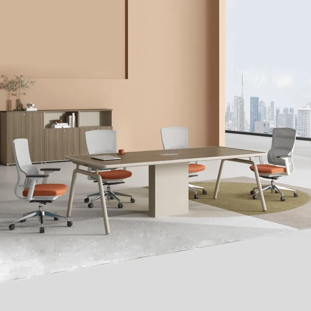 Bàn họp nhập khẩu 212412H không chỉ đẹp mà còn được thiết kế dựa trên những nghiên cứu kỹ lưỡng về nhu cầu sử dụng thực tế trong văn phòng. Diện tích mặt bàn lớn giúp dễ dàng bố trí laptop, tài liệu, máy chiếu mini hay các vật dụng cần thiết trong buổi họp mà không gây chật chội. Chiều cao tiêu chuẩn của bàn được tính toán kỹ lưỡng để tạo sự thoải mái khi kết hợp với các loại ghế xoay hoặc ghế họp hiện đại.