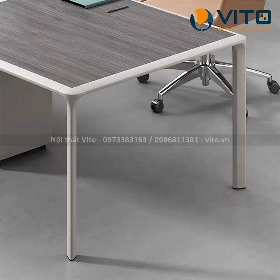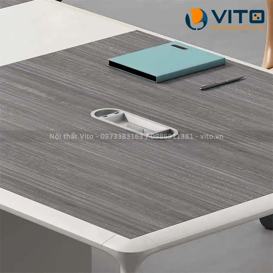 Bàn họp nhập khẩu Vito không chỉ đẹp mà còn được thiết kế dựa trên những nghiên cứu kỹ lưỡng về nhu cầu sử dụng thực tế trong văn phòng. Diện tích mặt bàn lớn giúp dễ dàng bố trí laptop, tài liệu, máy chiếu mini hay các vật dụng cần thiết trong buổi họp mà không gây chật chội.