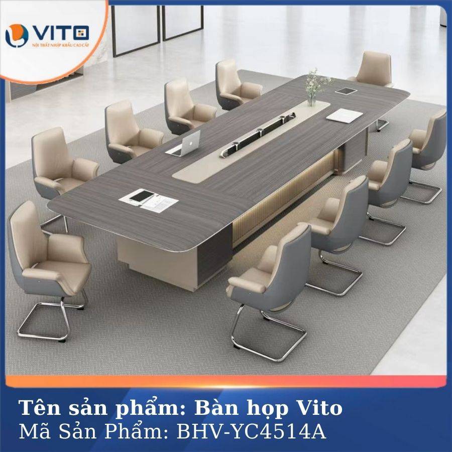 Một không gian phòng họp chuyên nghiệp không thể thiếu một chiếc bàn họp vừa thẩm mỹ vừa tiện ích. Mẫu bàn họp nhập khẩu Vito BHV-YC4514A chính là sự lựa chọn hoàn hảo để nâng tầm không gian phòng họp, mang đến sự tiện nghi, thẩm mỹ và tính ứng dụng cao. Hãy cùng Nội thất nhập khẩu Vito khám phá chi tiết về mẫu bàn họp nhập khẩu chất lượng này ngay nhé!