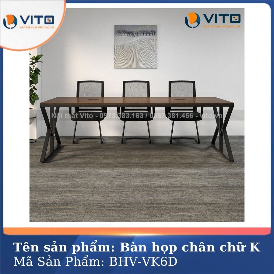 Với kích thước hợp lý, thiết kế sang trọng và khả năng tối ưu hóa không gian, bàn họp văn phòng chân chữ K BHV-VK6D là một sự lựa chọn lý tưởng cho các văn phòng hiện đại, giúp nâng cao hiệu quả công việc và mang đến một không gian làm việc chuyên nghiệp, thoải mái? Hãy liên hệ ngay Vito để sở hữu cho mình những chiếc bàn làm việc hoàn mỹ nhất nhé!