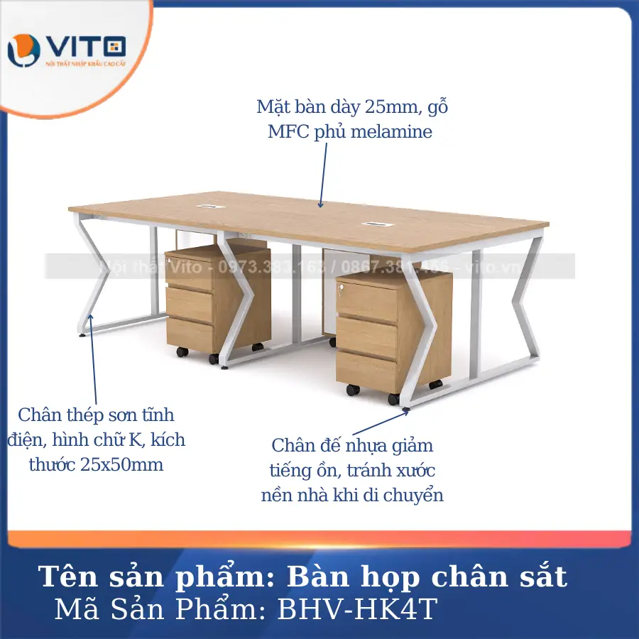 Thông tin chi tiết Bàn họp văn phòng chân chữ K Vito BHV-HK4T: