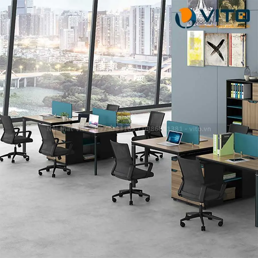 Văn phòng lắp đặt cụm bàn làm việc, không chỉ giúp tiết kiệm diện tích, không gian sử dụng, mà còn tạo sự đồng bộ, chuyên nghiệp cho công ty.