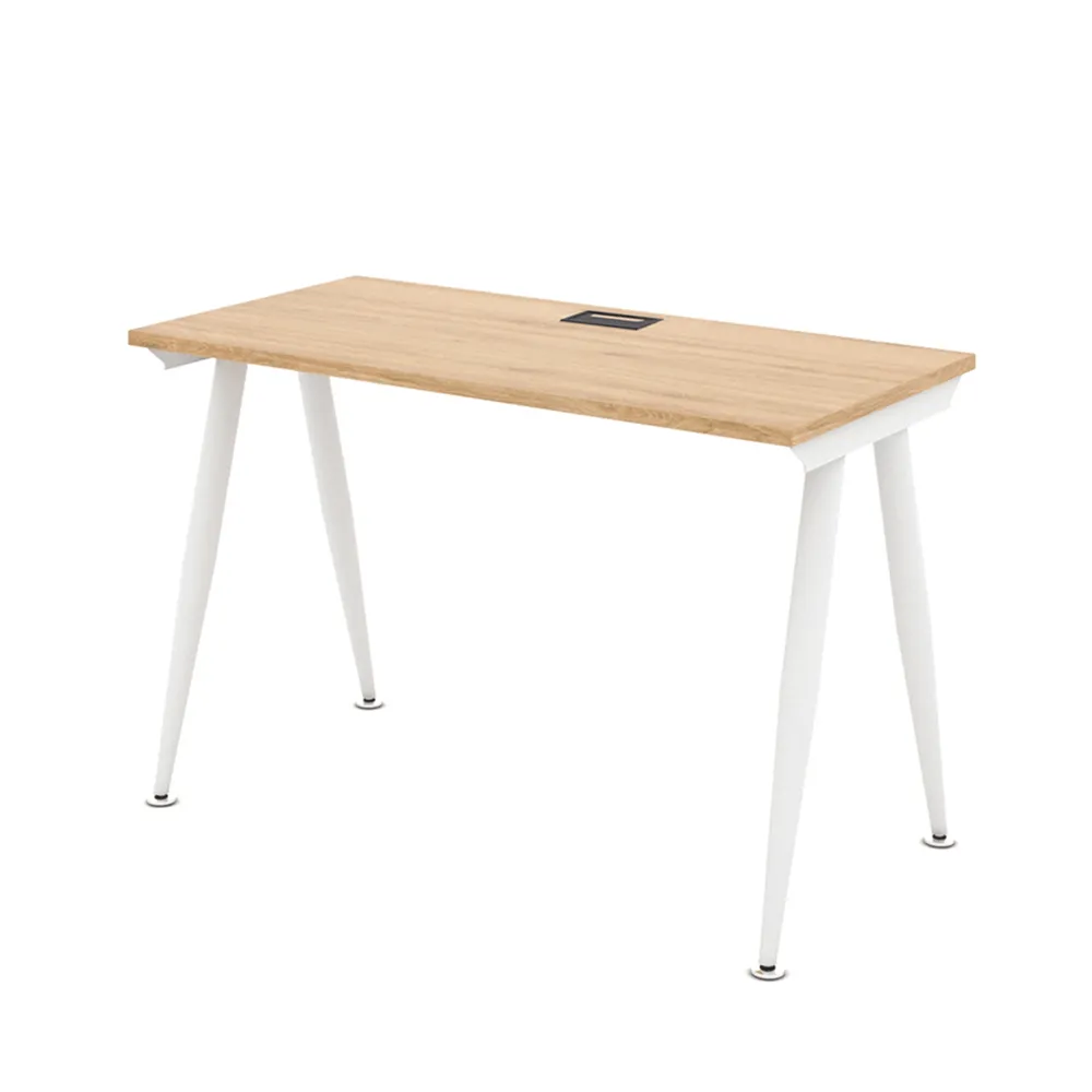 Không chỉ đẹp mắt, bàn làm việc BLVV-20T-1 còn được chế tác từ những vật liệu chất lượng cao, đảm bảo độ bền và tính ổn định lâu dài. Mặt bàn được làm từ gỗ MDF phủ melamine với khả năng chống ẩm, chống trầy xước và dễ dàng vệ sinh. Lớp phủ melamine không chỉ mang lại vẻ ngoài giống gỗ thật mà còn tăng thêm tính thẩm mỹ cho sản phẩm. Phần khung chân được làm từ thép sơn tĩnh điện màu trắng, với thiết kế thuôn dần về phía dưới tạo cảm giác thanh thoát nhưng vẫn rất vững chắc. Các chân bàn còn được gắn đế kim loại chống trượt và giúp cân bằng, bảo vệ sàn nhà khỏi trầy xước.