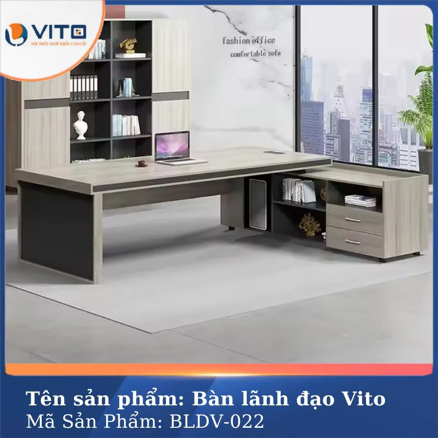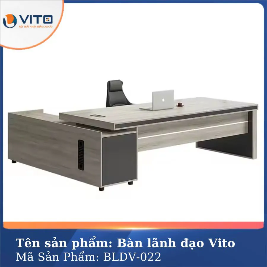 Với phong cách hiện đại và sang trọng, Bàn lãnh đạo gỗ Vito phù hợp với nhiều kiểu không gian văn phòng khác nhau. Sản phẩm này thích hợp cho các văn phòng giám đốc, phòng lãnh đạo hoặc các không gian làm việc yêu cầu sự chuyên nghiệp và tinh tế.