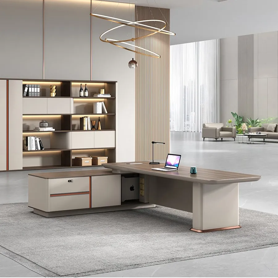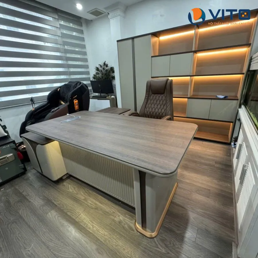 Thiết kế tủ phụ không chỉ giúp bàn làm việc trở nên ngăn nắp hơn mà còn mang lại sự tiện lợi tối đa cho người sử dụng. Nhờ đó, người lãnh đạo có thể quản lý công việc một cách hiệu quả hơn, mà không lo thiếu không gian lưu trữ.