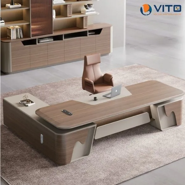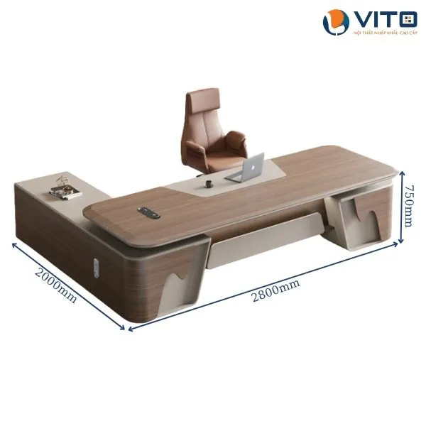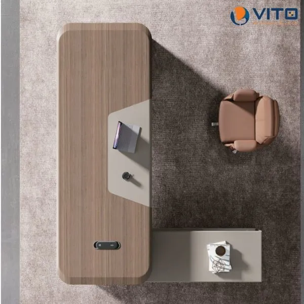 Bàn lãnh đạo nhập khẩu Vito BLDV-JB64 là sản phẩm được thiết kế dành riêng cho các vị lãnh đạo cấp cao yêu thích sự đột phá trong không gian làm việc. Mẫu bàn mang hơi hướng hiện đại, kết hợp giữa đường nét vuông vức mạnh mẽ và những chi tiết bo cong mềm mại, tạo nên tổng thể cân đối, sang trọng nhưng không quá cứng nhắc. Kiểu dáng bàn chữ L liền tủ phụ mở rộng không gian làm việc, đồng thời khẳng định đẳng cấp chuyên nghiệp cho văn phòng. Thiết kế mặt bàn tràn viền, các cạnh được xử lý kỹ lưỡng với đường cong lượn uyển chuyển, vừa tạo điểm nhấn thị giác, vừa tăng tính an toàn trong quá trình sử dụng.