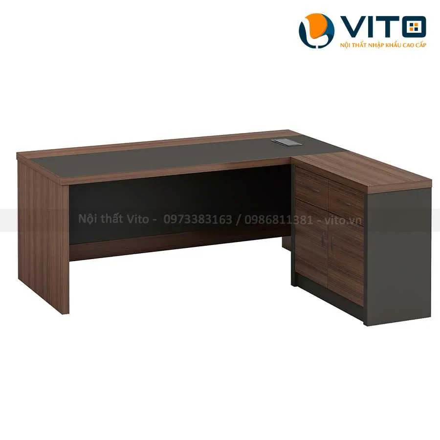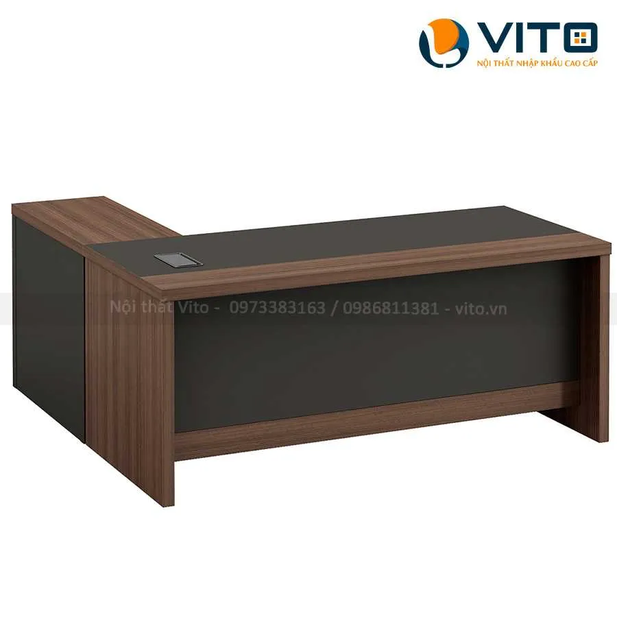 Bàn lãnh đạo nhập khẩu Vito 1m8 BLDV-KT-06T1616 được sản xuất từ chất liệu gỗ MDF phủ Melamine, một chất liệu hiện đại có nhiều ưu điểm vượt trội:
