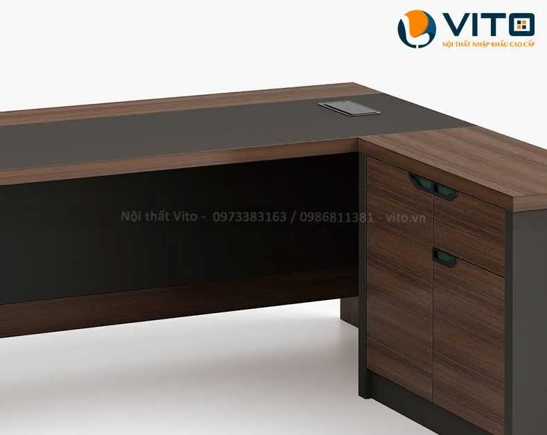 Thiết kế tủ phụ không chỉ giúp bàn làm việc trở nên ngăn nắp hơn mà còn mang lại sự tiện lợi tối đa cho người sử dụng. Nhờ đó, người lãnh đạo có thể quản lý công việc một cách hiệu quả hơn, mà không lo thiếu không gian lưu trữ.