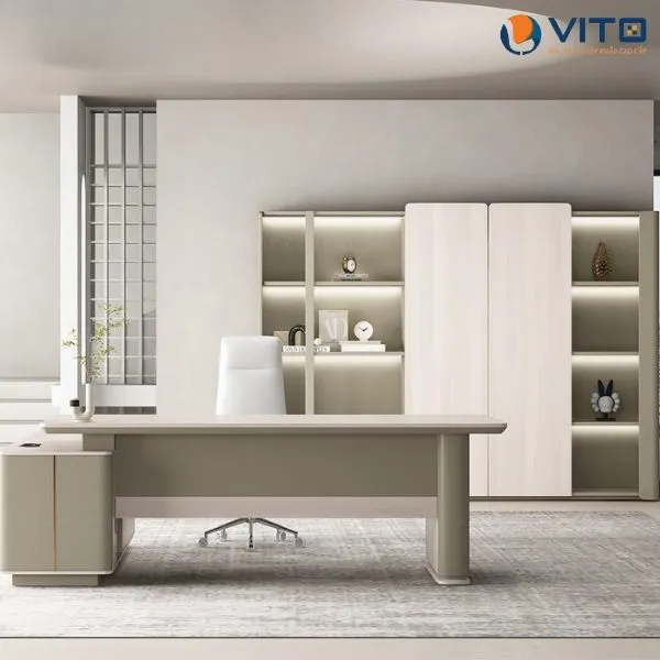 Hãy để mẫu bàn lãnh đạo này cùng bạn kiến tạo một không gian làm việc đầy cảm hứng, nơi mọi ý tưởng đều được nuôi dưỡng và mọi quyết định quan trọng đều được đưa ra với sự tự tin và uy tín. Liên hệ ngay đến VITO để được tư vấn chi tiết hoặc ghé thăm showroom của chúng tôi để trải nghiệm trực tiếp sản phẩm.