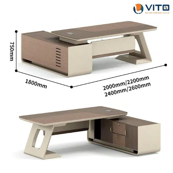 Bàn lãnh đạo Vito BLDV-B611 là một trong những mẫu bàn lãnh đạo được khách hàng ưa chuộng hàng đầu tại Vito. Sản phẩm này sở hữu thiết kế hiện đại, sang trọng, đặc biệt phù hợp với những vị trí lãnh đạo, mang đến sự uy nghi và đẳng cấp cho người sử dụng. Hãy cùng Nội thất nhập khẩu Vito khám phá chi tiết về mẫu bàn lãnh đạo chất lượng này ngay nhé!