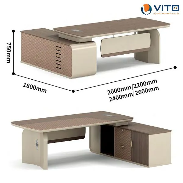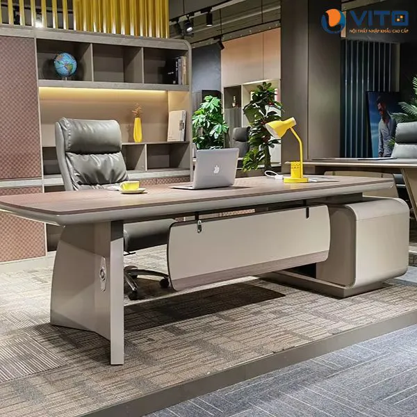 Bàn lãnh đạo Vito BLDV-B612 là một trong những mẫu bàn lãnh đạo được khách hàng ưa chuộng hàng đầu tại Vito. Sản phẩm này sở hữu thiết kế hiện đại, sang trọng, đặc biệt phù hợp với những vị trí lãnh đạo, mang đến sự uy nghi và đẳng cấp cho người sử dụng. Hãy cùng Nội thất nhập khẩu Vito khám phá chi tiết về mẫu bàn lãnh đạo chất lượng này ngay nhé!