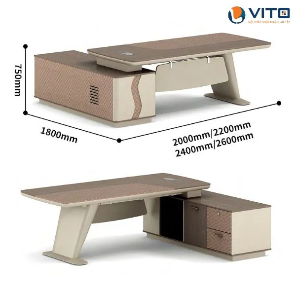 Bàn lãnh đạo Vito BLDV-B617 là một trong những mẫu bàn lãnh đạo được khách hàng ưa chuộng hàng đầu tại Vito. Sản phẩm này sở hữu thiết kế hiện đại, sang trọng, đặc biệt phù hợp với những vị trí lãnh đạo, mang đến sự uy nghi và đẳng cấp cho người sử dụng. Hãy cùng Nội thất nhập khẩu Vito khám phá chi tiết về mẫu bàn lãnh đạo chất lượng này ngay nhé!