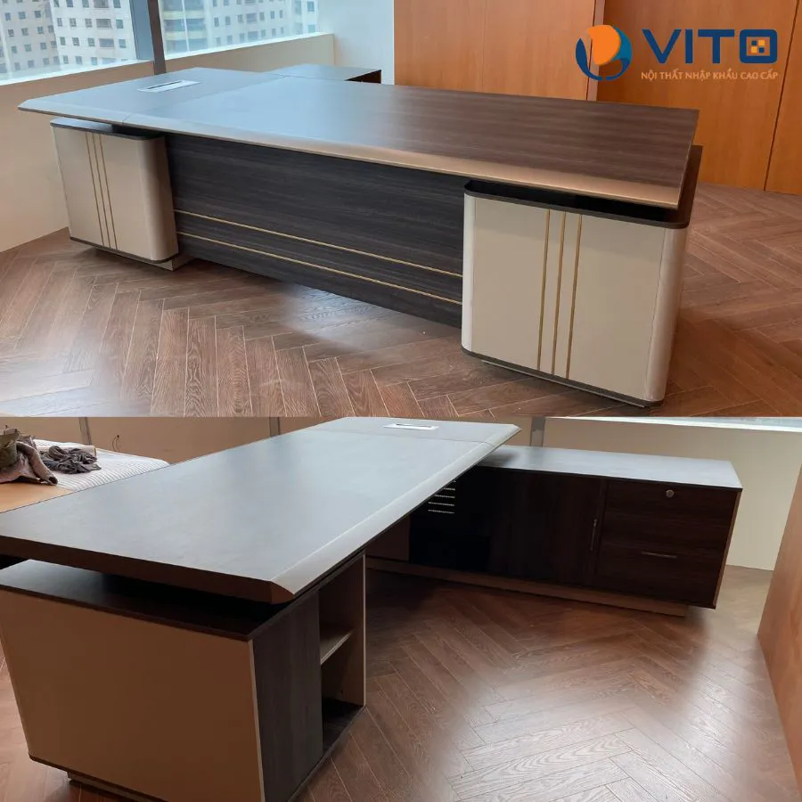 Bàn lãnh đạo Vito BLDV-B910-2, bạn không chỉ có một sản phẩm nội thất cao cấp mà còn thể hiện được vị thế và phong cách chuyên nghiệp trong công việc. Để sở hữu mẫu bàn giám đốc chất lượng này, quý khách hãy liên hệ ngay đến Vito để nhận được tư vấn chi tiết và những ưu đãi hấp dẫn nhất.