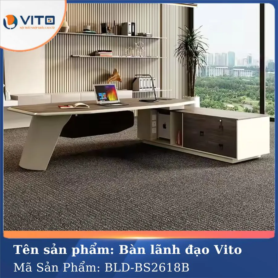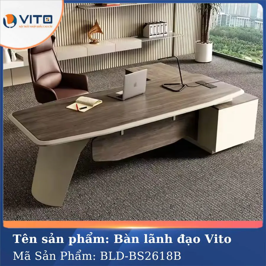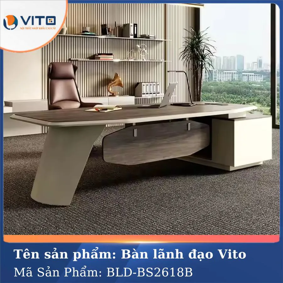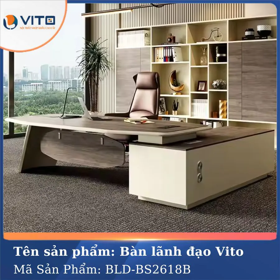 Trong xu hướng thiết kế văn phòng hiện đại ngày nay, không gian làm việc không chỉ đơn thuần là nơi xử lý công việc mà còn là yếu tố phản ánh cá tính, phong cách và tầm vóc của người lãnh đạo. Chính vì thế, việc lựa chọn một chiếc bàn lãnh đạo phù hợp đóng vai trò vô cùng quan trọng. Mẫu bàn lãnh đạo Vito BLDV-BS2618B là một trong những sản phẩm nổi bật được thiết kế dành riêng cho những nhà quản lý, giám đốc hoặc doanh nhân muốn thể hiện sự chuyên nghiệp, tinh tế và quyền uy trong không gian làm việc của mình. Hãy cùng Nội thất nhập khẩu Vito khám phá chi tiết về mẫu bàn lãnh đạo chất lượng này ngay nhé!