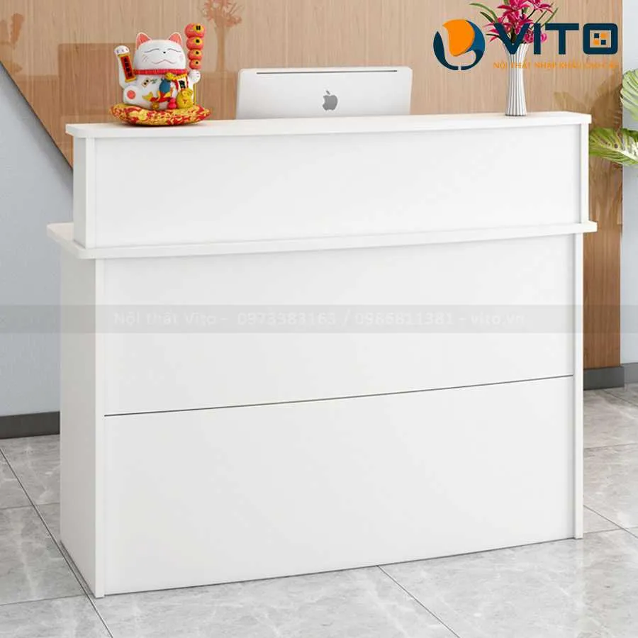Bàn quầy lễ tân là điểm chạm đầu tiên giữa doanh nghiệp và khách hàng. Bàn quầy lễ tân Vito QLTV-QLT13 không chỉ đáp ứng yêu cầu công năng mà còn gây ấn tượng bằng thiết kế hiện đại, tinh tế. Đây là sản phẩm lý tưởng để nâng tầm không gian văn phòng, khách sạn hay showroom.