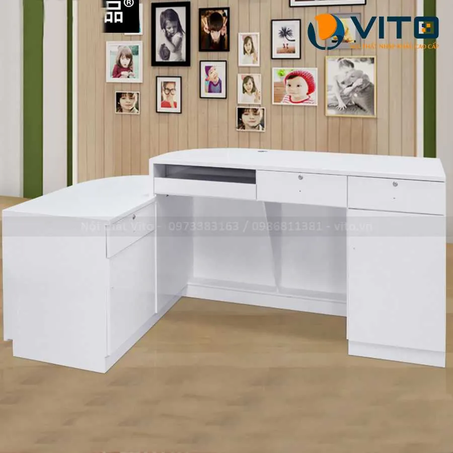 Bàn quầy lễ tân là điểm chạm đầu tiên giữa doanh nghiệp và khách hàng. Bàn quầy lễ tân Vito QLTV-QLT17 không chỉ đáp ứng yêu cầu công năng mà còn gây ấn tượng bằng thiết kế hiện đại, tinh tế. Đây là sản phẩm lý tưởng để nâng tầm không gian văn phòng, khách sạn hay showroom.