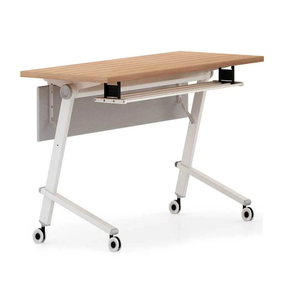 Một điểm đặc biệt của mẫu bàn này là khả năng gấp gọn mặt bàn thông qua cơ chế lật tiện lợi. Khi không sử dụng, bạn có thể gấp gọn và xếp chồng bàn một cách dễ dàng, giúp tối ưu không gian lưu trữ. Thiết kế bàn dạng gấp, công tác gấp được thực hiện bằng tay, giúp tối ưu hóa diện tích không gian văn phòng khi không sử dụng.