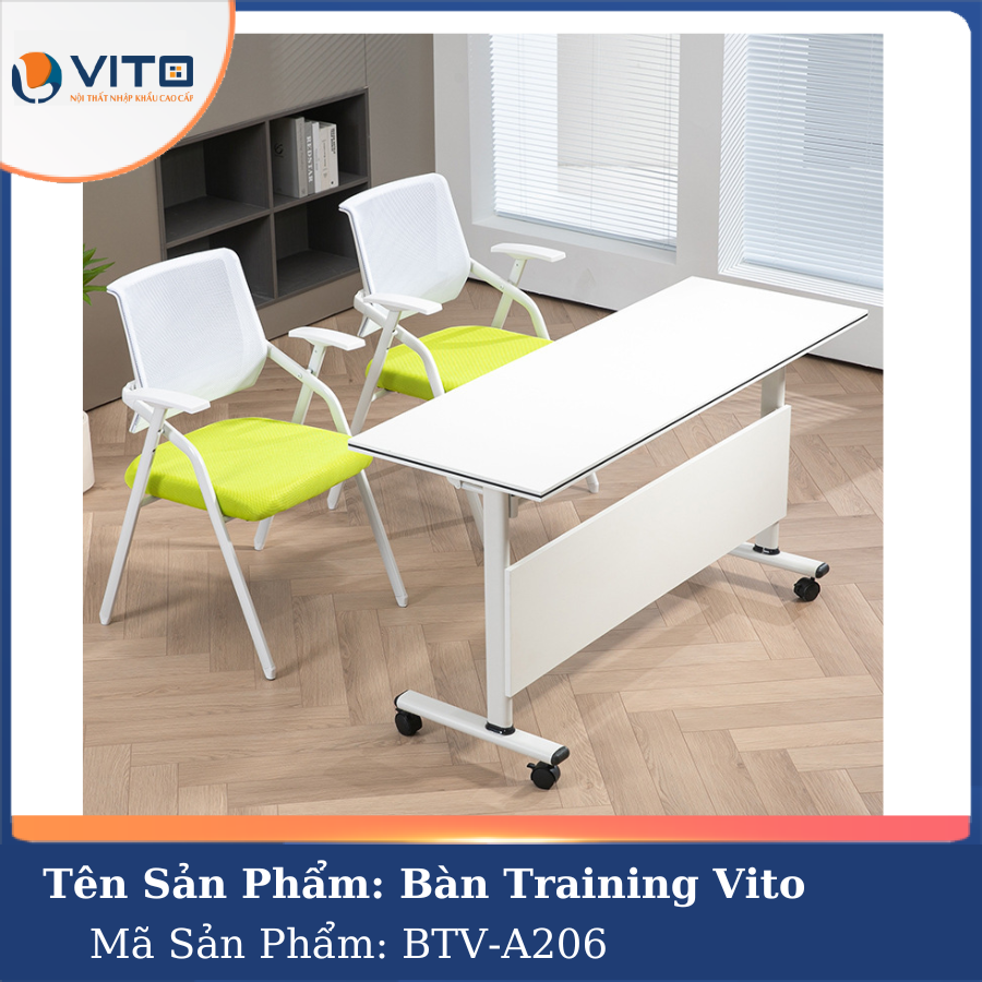 Bàn training Vito BTV-A206 là một trong những lựa chọn hàng đầu dành cho không gian đào tạo, hội thảo hay văn phòng hiện đại. Với thiết kế linh hoạt, chất liệu cao cấp và tính năng tiện lợi, sản phẩm này không chỉ mang đến sự tiện nghi mà còn giúp tối ưu hóa không gian làm việc. Hãy cùng Nội thất Vito tìm hiểu chi tiết về mẫu bàn training này ngay nhé!