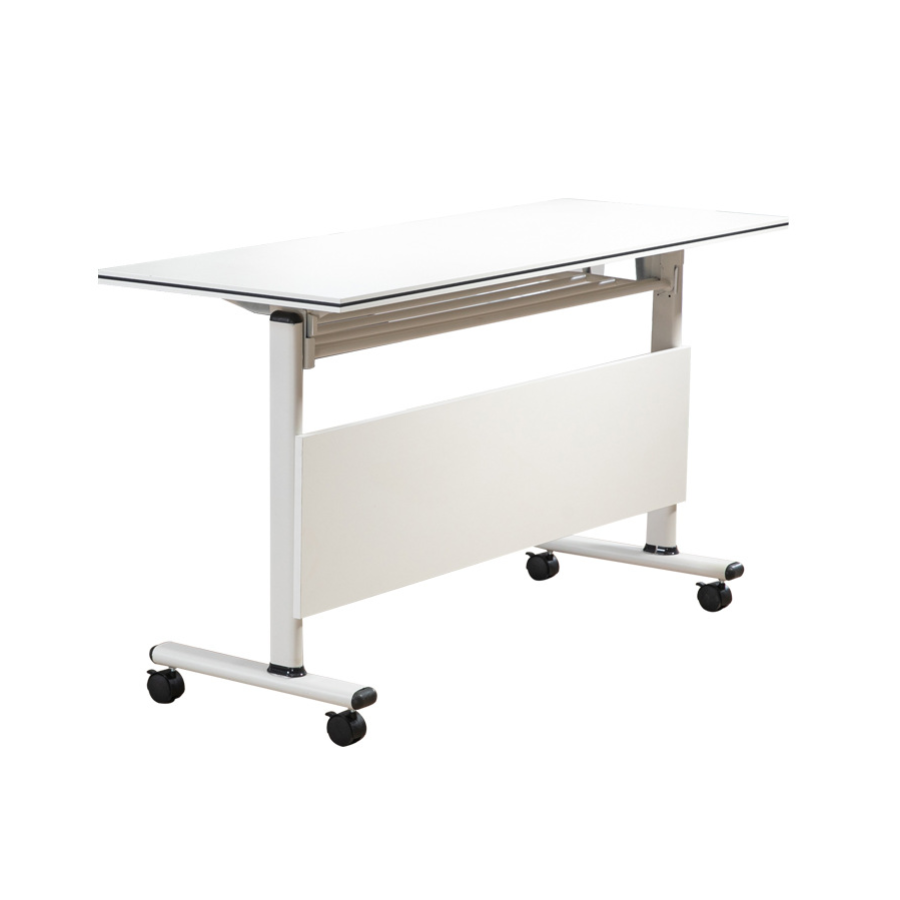 Một điểm đặc biệt của mẫu bàn này là thiết kế chân bàn có bánh xe, giúp người dùng có thể di chuyển bàn một cách dễ dàng mà không cần tốn quá nhiều công sức. Điều này rất hữu ích trong các không gian đào tạo, hội thảo, nơi cần sự thay đổi bố cục nhanh chóng để phù hợp với từng hoạt động. Hơn nữa, bàn còn có khả năng gập gọn, giúp tiết kiệm diện tích tối đa khi không sử dụng. Đây là một lợi thế lớn đối với những văn phòng có diện tích hạn chế hoặc cần sắp xếp không gian một cách linh hoạt.