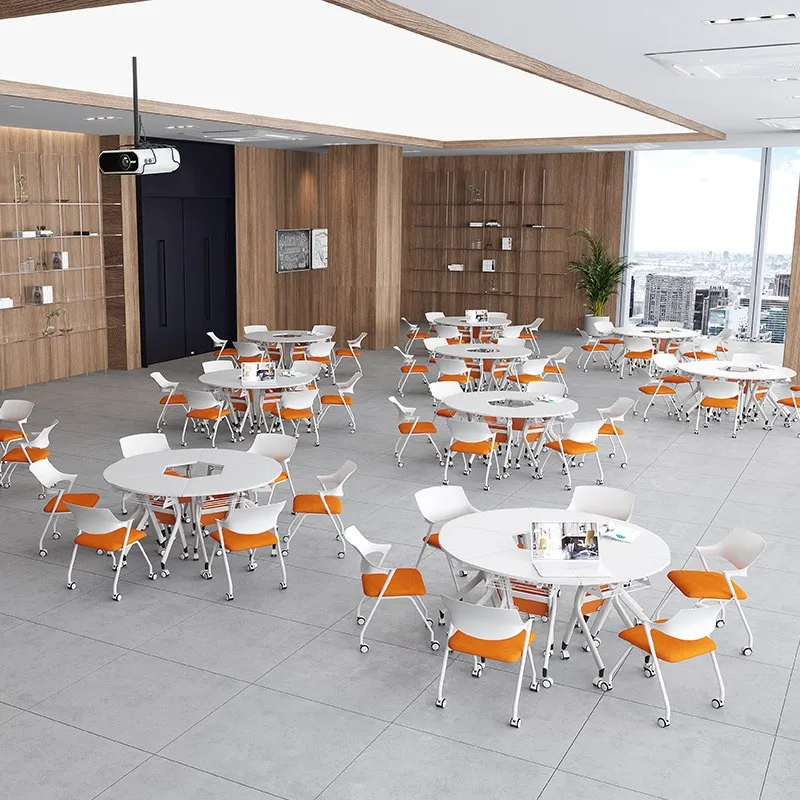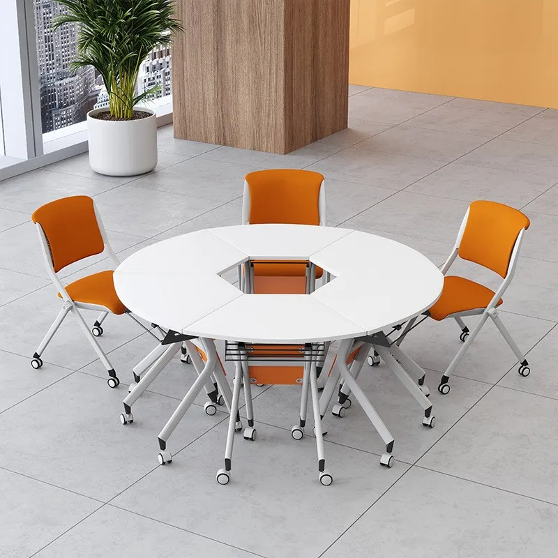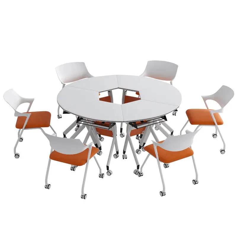Điểm nổi bật của mẫu bàn này chính là tính linh hoạt cao. Thiết kế chân bàn tích hợp bánh xe giúp di chuyển dễ dàng, đặc biệt hữu ích trong các môi trường cần thay đổi bố cục thường xuyên như phòng đào tạo hoặc hội thảo. Bàn có thể tách ra hoặc xếp vào để tạo không gian làm việc tối ưu. Đây là một lợi thế lớn đối với các văn phòng có diện tích hạn chế hoặc những không gian đa chức năng.