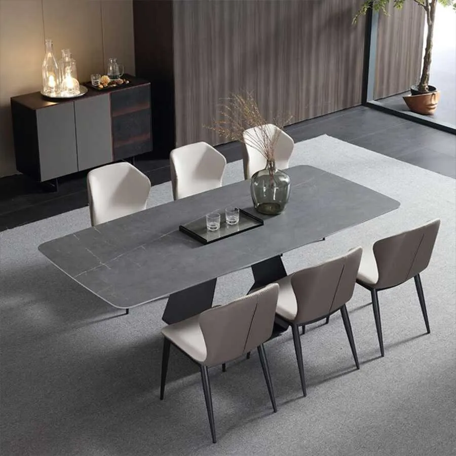 Chất Liệu: Mặt bàn đá ceramic, chân sắt sơn tĩnh điện đen nhám, ghế sắt sơn tĩnh điện bọc da nhân tạo.