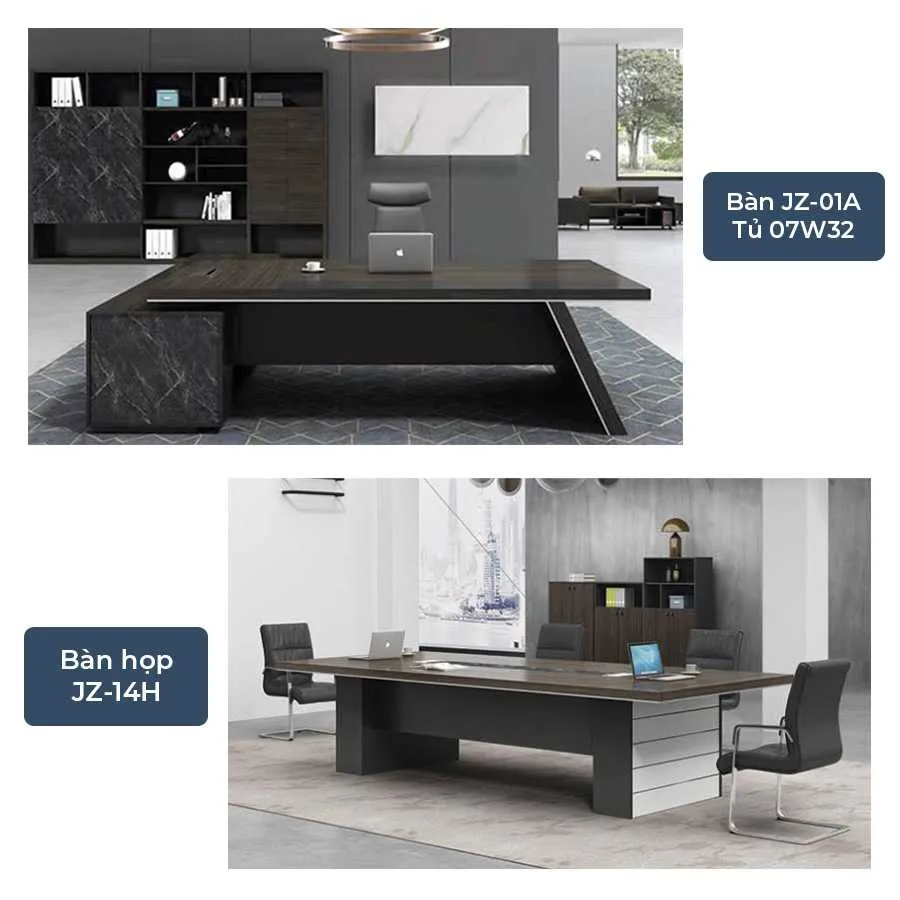 Combo phòng giám đốc Vito CBV‑CB07 là lựa chọn hoàn hảo cho không gian lãnh đạo đẳng cấp và hiện đại, gồm ba sản phẩm nổi bật: bàn lãnh đạo Eury JZ‑01A thiết kế bề thế, sang trọng; tủ lãnh đạo Eury 07W32 với khả năng lưu trữ tối ưu, chia khoang thông minh; và bàn họp cao cấp Eury JZ‑14H phù hợp cho các buổi trao đổi nội bộ ngay trong phòng làm việc. Toàn bộ combo sử dụng chất liệu gỗ công nghiệp phủ Melamine cao cấp, chống trầy xước, bền màu, dễ vệ sinh, mang đến sự tiện nghi và phong thái chuyên nghiệp cho nhà lãnh đạo.