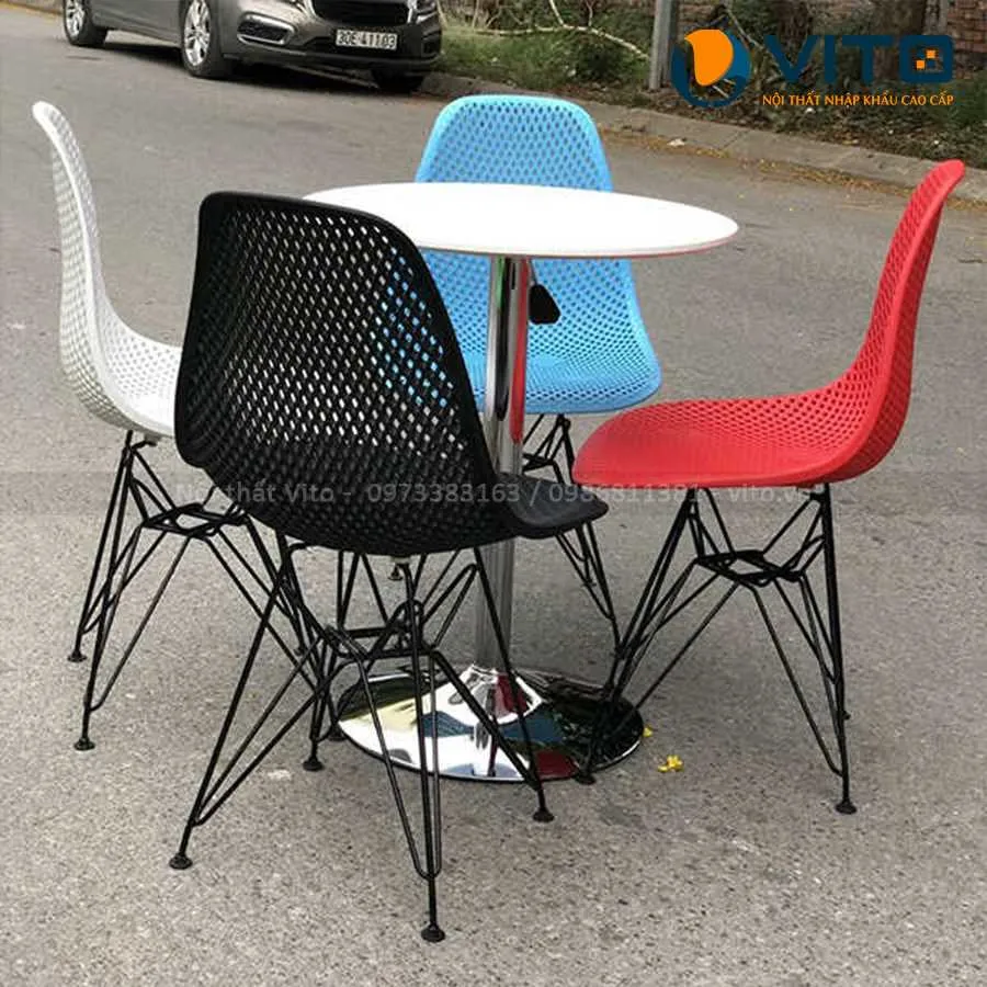 Ghế Cafe Vito GBV-J12S là dòng ghế cafe, thư giãn với nhiều màu sắc. Mặt ghế là nhựa PP lưới dẻo dai, thoáng khí, chân ghế là sắt sơn tĩnh điện màu đen hiện đại, chống han gỉ.