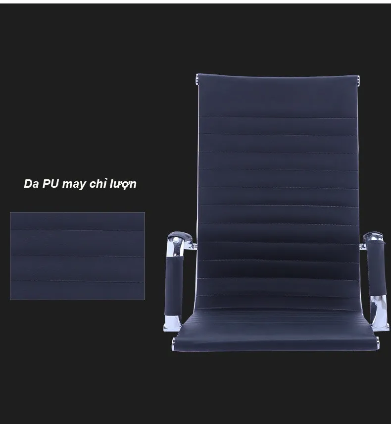 Phần tay vịn của ghế được làm từ kim loại mạ crom sáng bóng, vừa chắc chắn vừa tăng tính thẩm mỹ cho sản phẩm. Chân ghế được thiết kế dạng quỳ, đảm bảo sự ổn định và vững chắc, giúp người dùng có tư thế ngồi đúng chuẩn, hạn chế tình trạng đau mỏi lưng và vai gáy.