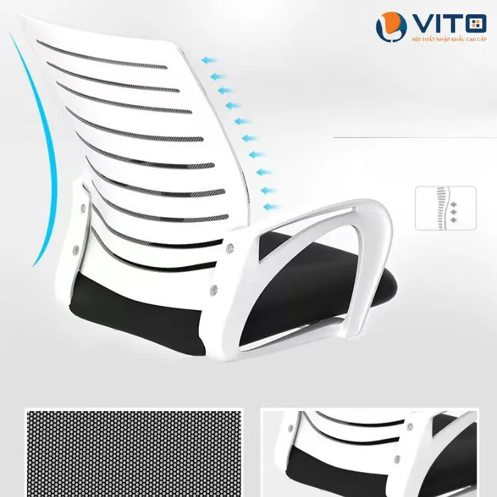 Không chỉ nổi bật về thiết kế và chất liệu, ghế chân quỳ Vito GCQV-B616Q còn được đánh giá cao về công năng sử dụng. Ghế có khả năng chịu trọng tải lớn nhờ khung chân quỳ vững chắc, đồng thời giảm thiểu tiếng ồn khi di chuyển. Tựa lưng lưới không chỉ giúp thông thoáng mà còn tăng độ đàn hồi, mang lại cảm giác dễ chịu khi ngồi lâu. Thiết kế chân quỳ còn giúp người ngồi giữ tư thế chuẩn, tránh các vấn đề về cột sống và lưu thông máu.