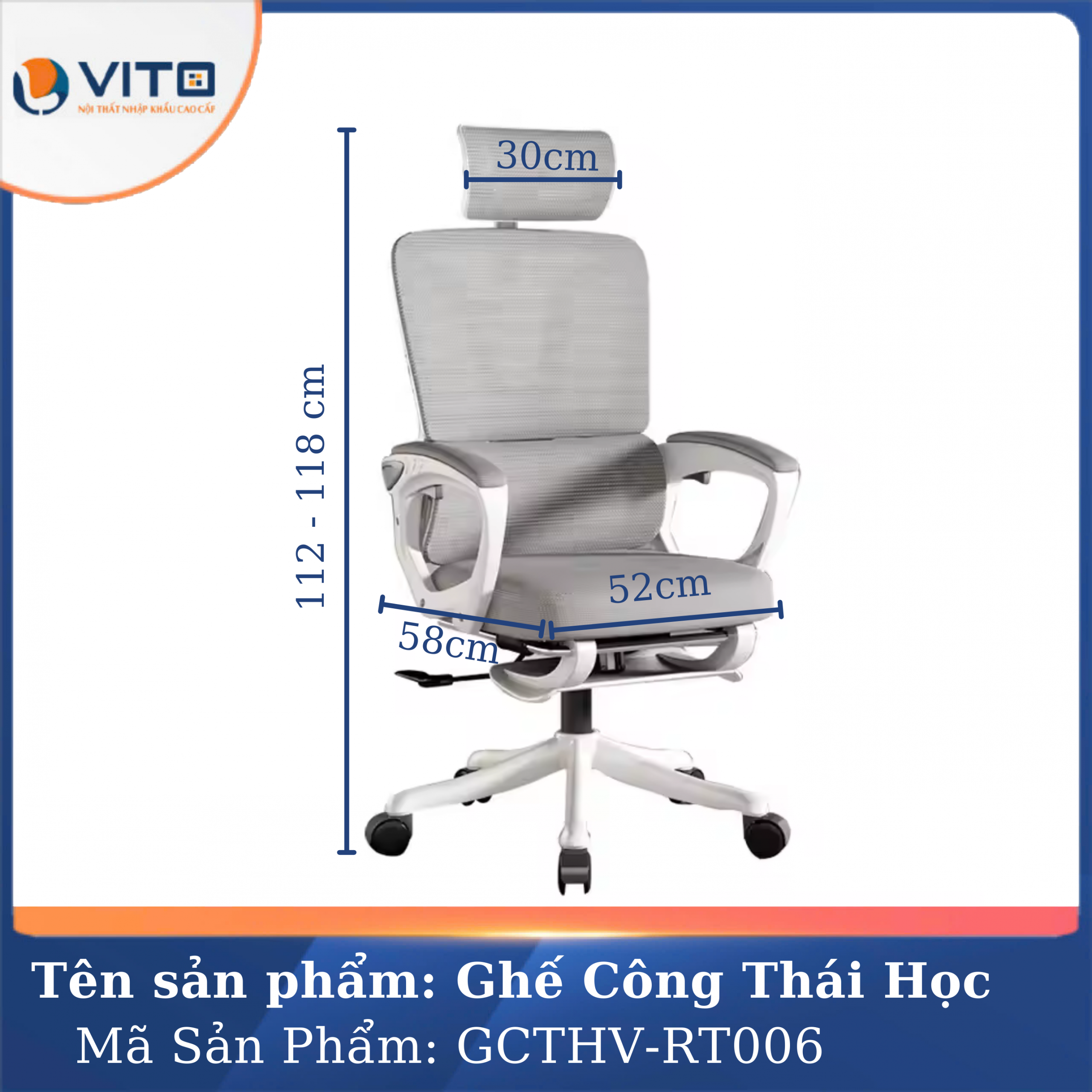 Trong môi trường làm việc hiện đại, nơi mà công việc văn phòng chiếm phần lớn thời gian của chúng ta, việc chọn lựa một chiếc ghế phù hợp không chỉ là một yếu tố quan trọng đối với sự thoải mái mà còn đóng vai trò quyết định trong việc bảo vệ sức khỏe. Ghế công thái học Vito GCTHV-RT006 đã được thiết kế để đáp ứng nhu cầu này, mang đến một giải pháp tối ưu cho người sử dụng. Cùng Vito khám phá Ghế công thái học GCTHV-RT006G ngay nhé!