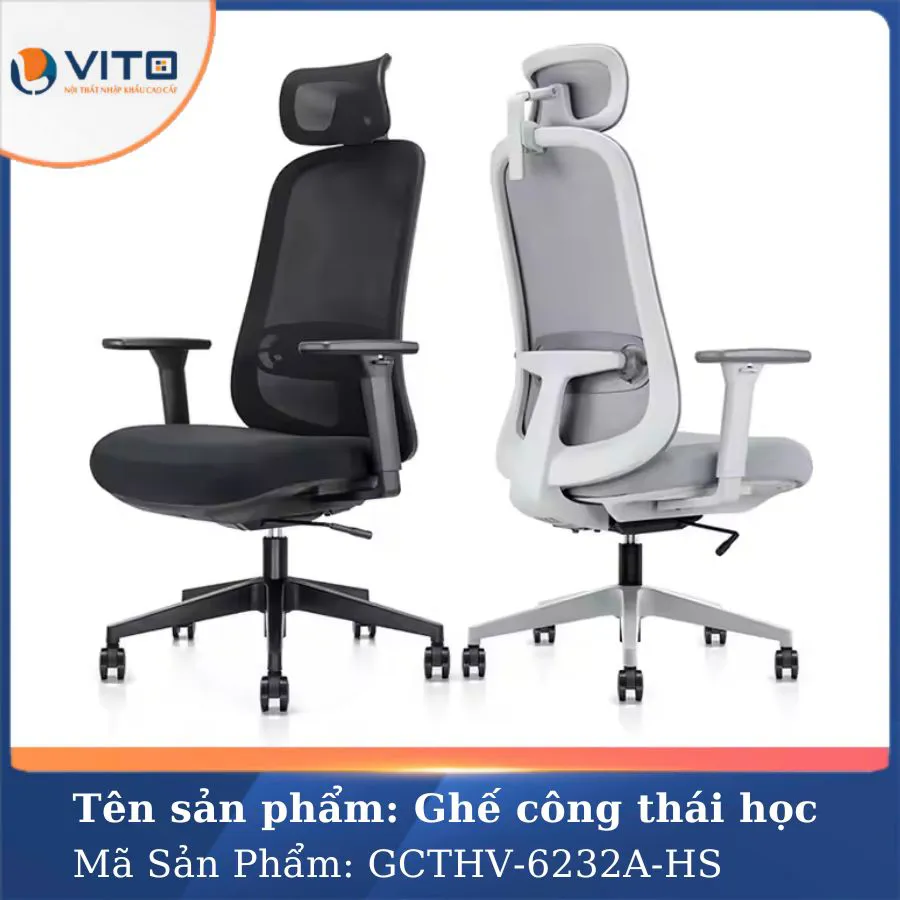 Ghế công thái học GCTHV-6232A-HS không chỉ có thiết kế thẩm mỹ mà còn được chăm chút về chất liệu và công năng từng bộ phận, giúp tạo nên một sản phẩm chất lượng cao, phù hợp cho môi trường làm việc văn phòng. Để sở hữu mẫu ghế văn phòng chất lượng này, quý khách hãy liên hệ ngay đến Vito để nhận được tư vấn chi tiết và những ưu đãi hấp dẫn nhất.