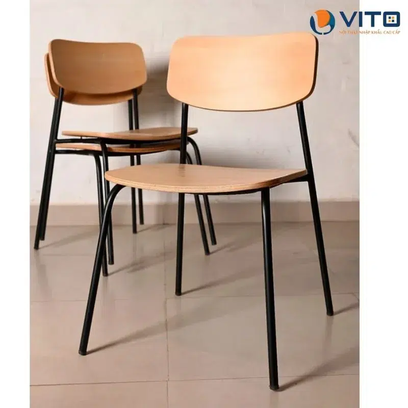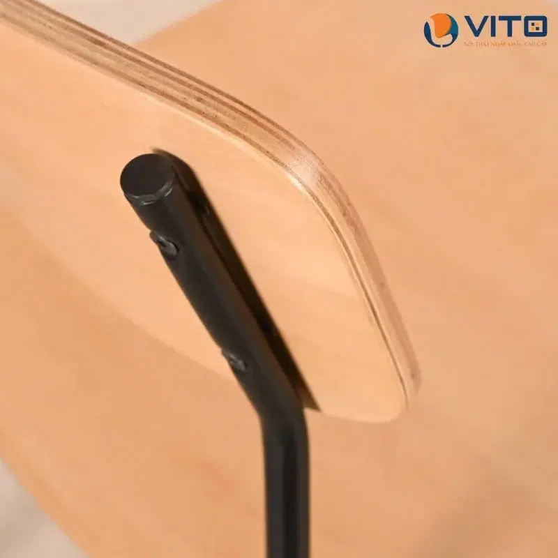 Ngay từ cái nhìn đầu tiên, Ghế cafe đẹp Vito GA-HK04 đã dễ dàng thu hút ánh nhìn bởi thiết kế mang đậm tinh thần tối giản Bắc Âu nhưng vẫn toát lên vẻ cá tính và độc đáo. Lưng ghế và mặt ngồi được chế tác từ chất liệu gỗ plywood chắc chắn, thiết kế cong nhẹ giúp nâng đỡ tốt cho cơ thể. Phần lưng tựa được nâng đỡ bởi thanh kim loại chắc chắn, tạo nên cảm giác thoáng đãng và hiện đại. Bên cạnh đó, phần chân ghế thon gọn, được sơn tĩnh điện màu đen nhám, không chỉ tăng tính thẩm mỹ mà còn giúp sản phẩm trở nên cứng cáp, bền bỉ, và dễ dàng phối hợp với nhiều kiểu không gian nội thất khác nhau như hiện đại, tối giản.