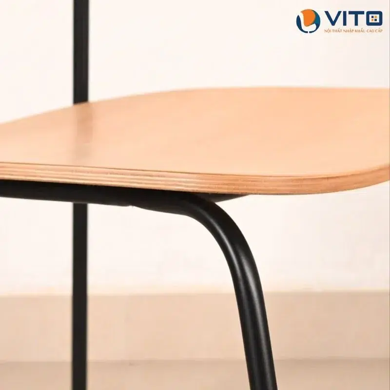 Tựa và mặt ngồi ép Laminate 2 mặt. Khung thép sơn đen chắc chắn, hạn chế hoen gỉ |