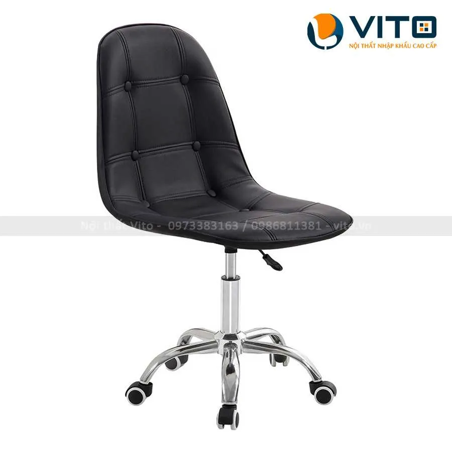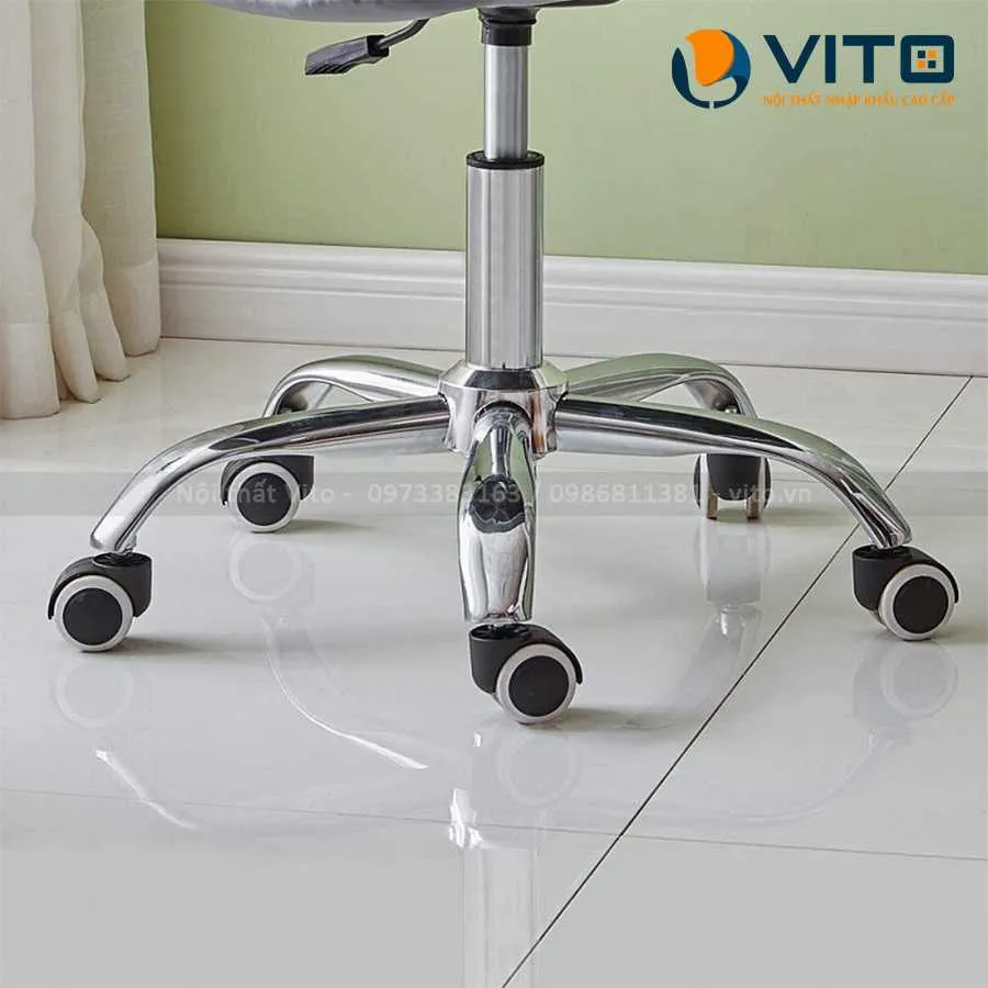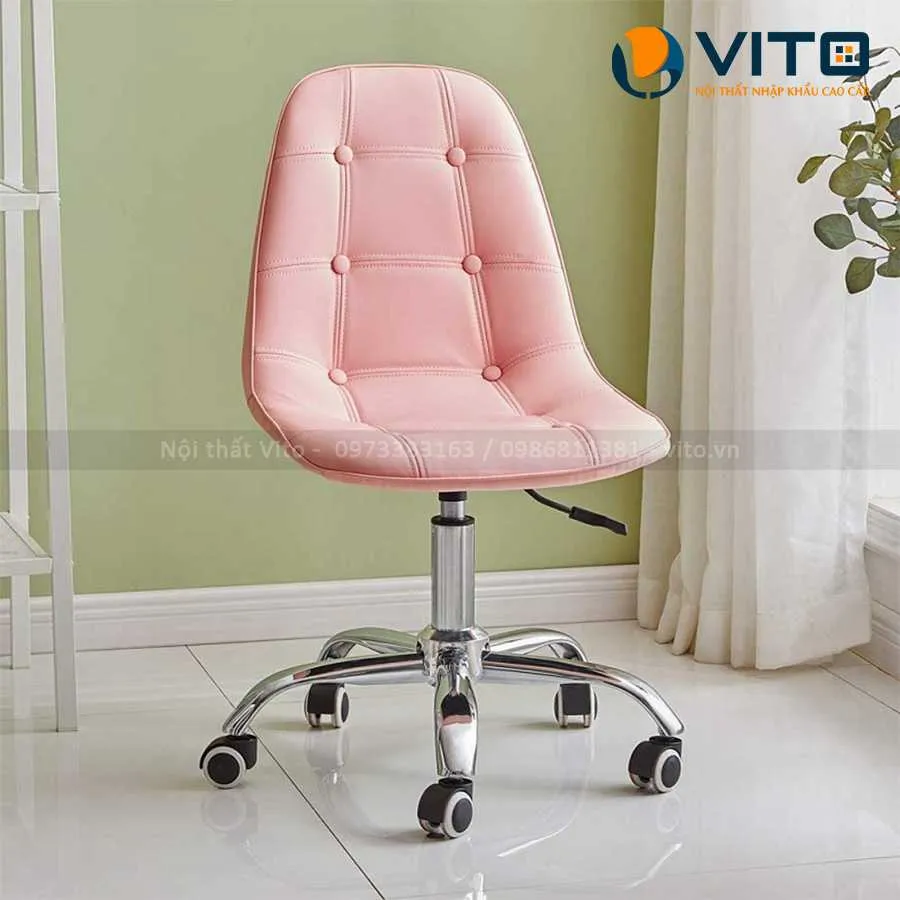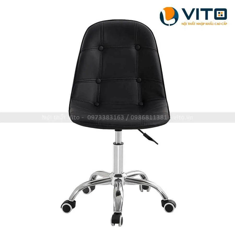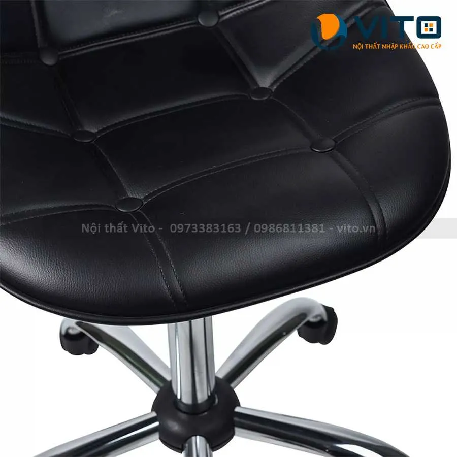 Ghế Bar Vito GBV-XJ4 với thiết kế nhỏ gọn và xinh xắn với các cúc đính trang trí đẹp mắt. Mẫu ghế này có thiết kế chân xoay với các bánh xe có thể xoay 360 độ linh hoạt. Ngoài ra, sản phẩm có piston giúp điều chỉnh chiều cao phù hợp.