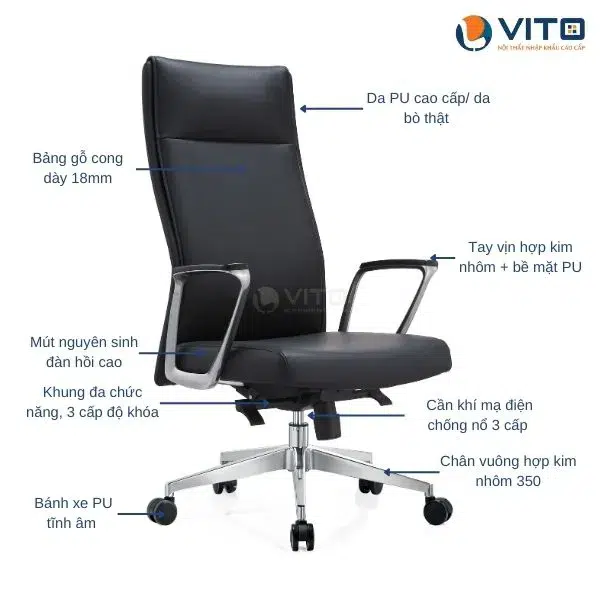 Thông tin chi tiết sản phẩm Ghế giám đốc da Vito GLDV-1918A: