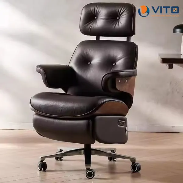 Không gian làm việc của người lãnh đạo luôn đòi hỏi sự chỉn chu, thẩm mỹ và tinh tế ở từng chi tiết.Trong đó, chiếc ghế làm việc được xem là trung tâm của toàn bộ không gian, nơi người lãnh đạo ra quyết định, hoạch định chiến lược và tiếp đón đối tác. Hiểu rõ điều đó, Nội thất Vito đã mang đến thị trường mẫu ghế lãnh đạo da bò cao cấp GLDV-CDR01, một sản phẩm hội tụ trọn vẹn giữa thiết kế đẳng cấp, chất lượng và tính tiện nghi vượt trội.