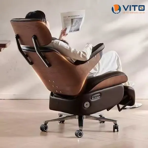 Không chỉ gây ấn tượng ở thiết kế và chất liệu, Ghế lãnh đạo da bò Vito GLDV-CDR01 còn ghi điểm nhờ tính năng vận hành hiện đại, giúp người dùng tối ưu hóa trải nghiệm làm việc. Đặc biệt, ghế được tích hợp hệ thống ngả điện thông minh, cho phép người dùng dễ dàng điều chỉnh độ ngả lưng bằng nút điều khiển bên hông. Chức năng này vô cùng tiện lợi khi người lãnh đạo cần nghỉ ngơi giữa giờ, chợp mắt thư giãn hay thả lỏng cơ thể sau những cuộc họp kéo dài.