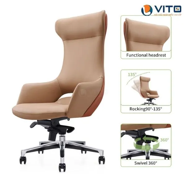 Ghế lãnh đạo da Vito GLDV-6907A, sự kết hợp hoàn hảo giữa công thái học và thẩm mỹ