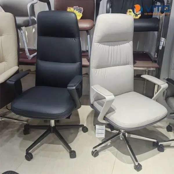 Màu sắc trung tính của ghế mang đến sự thanh lịch, đồng thời dễ kết hợp với bàn lãnh đạo, tủ hồ sơ hay bàn họp. Đây chính là chi tiết hoàn hảo để tôn lên hình ảnh chuyên nghiệp và quyền lực của người ngồi, khẳng định vị thế lãnh đạo trong mắt đối tác và nhân viên.