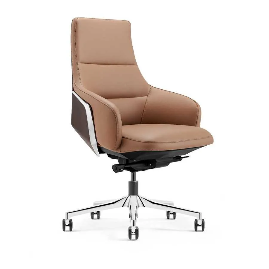 Không chỉ vậy, phần tay vịn được thiết kế uốn cong mềm mại, kết hợp hài hòa giữa chất liệu kim loại mạ sáng bóng và lớp đệm bọc da, tạo cảm giác thoải mái khi đặt tay trong quá trình làm việc. Khuôn lưng ghế được thiết kế theo dáng cột sống, giúp nâng đỡ tối đa phần lưng, giảm áp lực lên cột sống, tốt cho sức khỏe của người dùng.