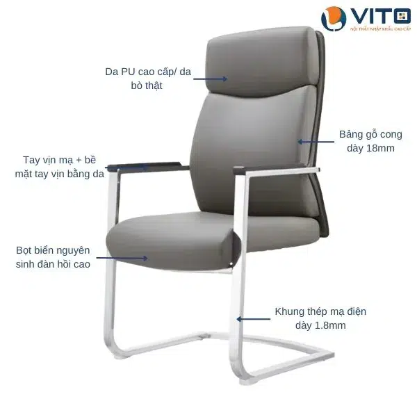 Trong môi trường công sở, ghế văn phòng không chỉ đơn thuần là một vật dụng hỗ trợ ngồi mà còn đóng vai trò như một yếu tố định hình phong cách, nâng tầm hình ảnh của doanh nghiệp. Ghế quỳ da Vito GQD-2325D là một trong những lựa chọn nổi bật trên thị trường hiện nay, được thiết kế với sự tinh tế trong từng chi tiết và sản xuất từ chất liệu cao cấp nhằm mang đến trải nghiệm thoải mái, bền bỉ cho người dùng. Quý khách hãy cùng Nội thất Vito khám phá về những ưu điểm nổi bật của mẫu ghế chân quỳ này ngay nhé!