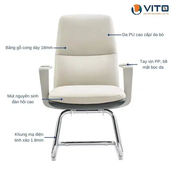 Trong môi trường công sở ngày nay, một chiếc ghế không chỉ đơn thuần phục vụ cho việc ngồi mà còn đóng vai trò quan trọng trong việc tạo nên hình ảnh chuyên nghiệp, nâng cao sự thoải mái cho nhân viên và khách hàng. Ghế quỳ da Vito GQD-6931D chính là minh chứng rõ nét cho sự kết hợp giữa tính tiện nghi, độ bền bỉ và vẻ đẹp sang trọng. Sản phẩm được thiết kế để trở thành lựa chọn tối ưu cho phòng họp, phòng tiếp khách hay ghế trình ký. Mỗi chi tiết trên ghế đều được chăm chút kỹ lưỡng, nhằm mang đến cho người dùng trải nghiệm sử dụng thoải mái và bền vững theo thời gian. Quý khách hãy cùng Nội thất Vito khám phá về những ưu điểm nổi bật của mẫu ghế chân quỳ này ngay nhé!